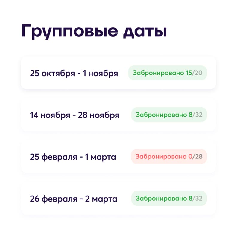 Делитесь с турагентами и командой информацией об актуальном количестве мест в заезде без звонков и писем